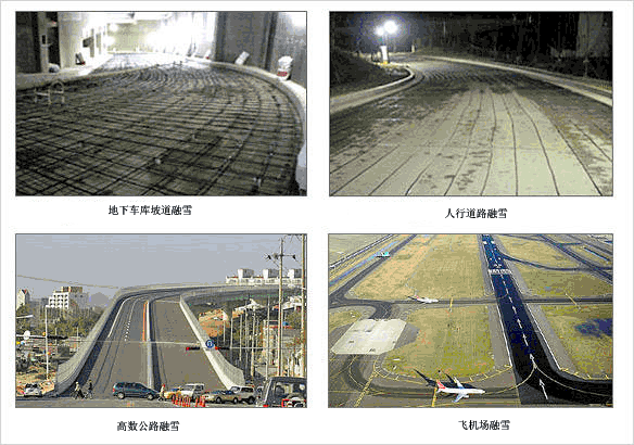 潔凈的人行路面,使人們活動(dòng)無冰雪困擾;避免傳統(tǒng)道路除冰雪方式帶來的昂貴費(fèi)用及除雪劑給路面帶來的損害 ;有效的融化坡道、階梯、直升機(jī)起降站和其它路面上的冰雪,清除危險(xiǎn),減少不便;