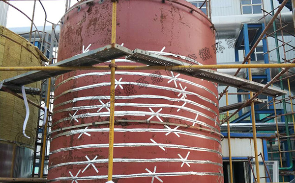罐體在電伴熱保溫中是非常常見的,像儲油罐、儲氣罐等,那么罐體使用電伴熱帶如何安裝呢,有客戶咨詢加油站零號柴油罐怎么安裝,其實是和其它場合罐體安裝方法是一樣的,但是選擇電伴熱帶型號的時候需要注意,要選擇防爆防腐型的。安裝的時候一般是兩種安裝方式,一種是由下至上螺旋式纏繞,保持適當的纏繞間距;另一種是由左向右,上下迂回式安裝,并保持均等的間距。然而儲罐的管壁面積大,比較陡峭,貼敷電伴熱帶不是很容易,所以在安裝的時候我們要很好的固定住電伴熱帶,將其完全貼敷于罐壁。